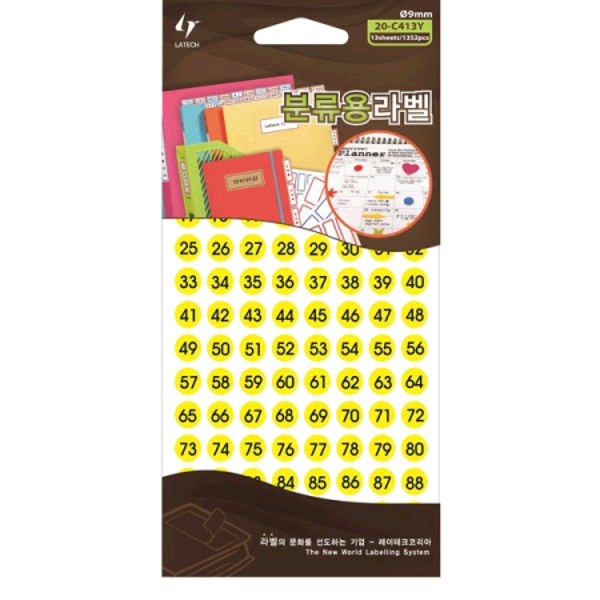 ·¹ÀÌÅ×Å© ºÐ·ù¿ë¶óº§(¼ýÀÚ) ¨ª9mm ³ë¶õ»ö 9¸Å 20-C413Y