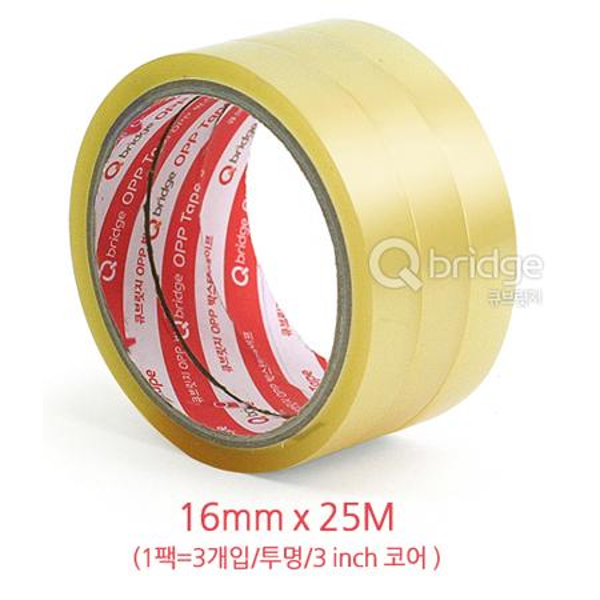 Qbridge OPP´Ù¿ëµµÅ×ÀÌÇÁ(Åõ¸í) 16mmx25M (1ÆÑ=3°³ÀÔ) OPPÆ÷Àå
