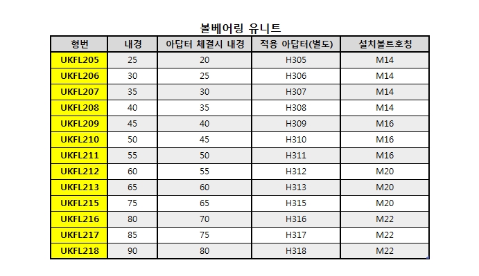 Ç°¸í ¹× ¸ðµ¨¸í [TYB] º¼º£¾î¸µ À¯´ÏÆ® UKFL205