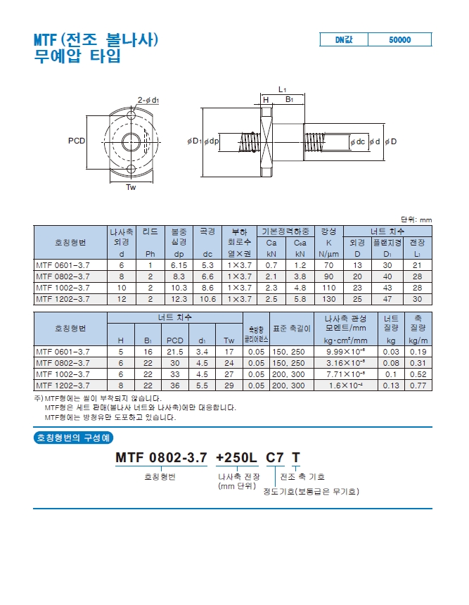 Ç°¸í ¹× ¸ðµ¨¸í [THK] ÀüÁ¶º¼½ºÅ©·ù MTFÇü MTF1002-3.7+200LT