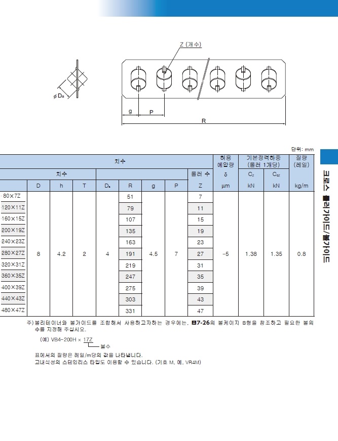 Ç°¸í ¹× ¸ðµ¨¸í [THK] Å©·Î½º·Ñ·¯°¡À̵å VR4Çü VR4?320H¡¿31Z