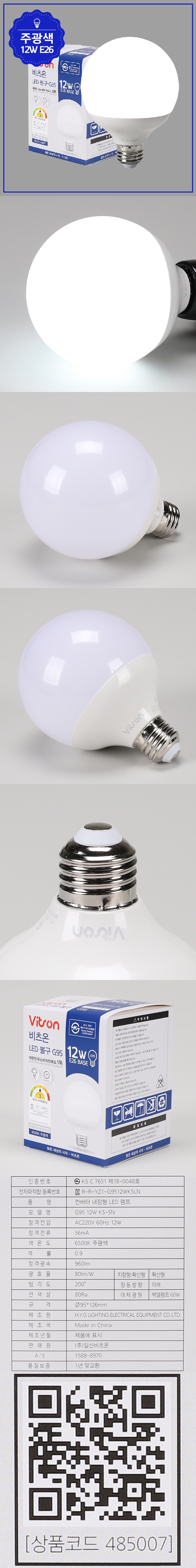 [ºñÃ÷¿Â]º¼±¸ LED 12W G95 ÁÖ±¤ KS |
