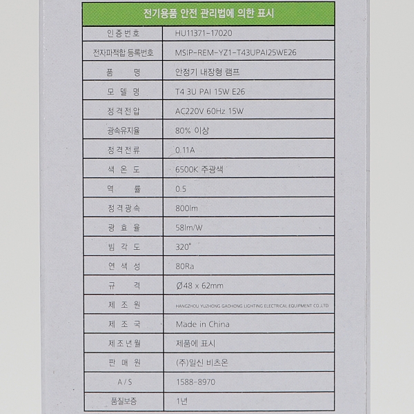 | ¸ðµ¨¸í | T4 3U PAI 15W E26 |