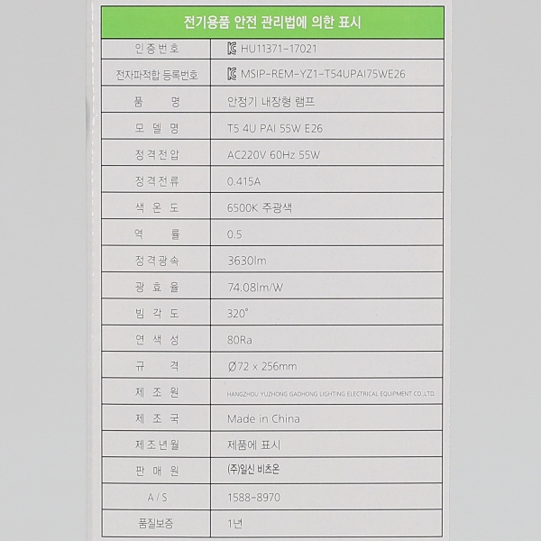 | ¸ðµ¨¸í | T5 4U PAI 55W E26 |