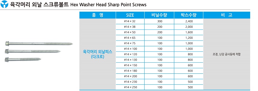 À°°¢¸Ó¸® ¿Ü³¯Çǽº #14 x 100 (1000EA/BOX) |