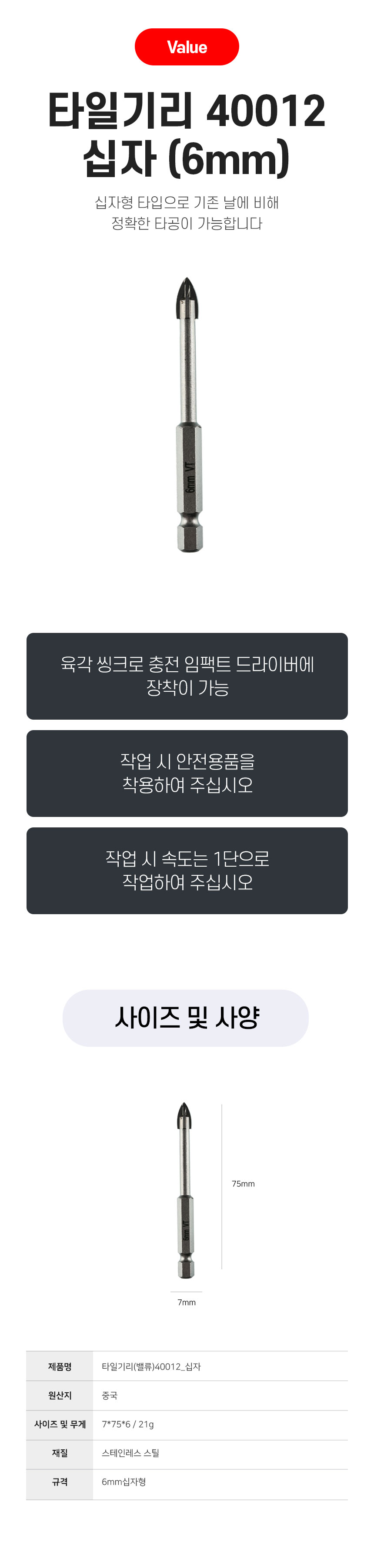 Ç°¸í ¹× ¸ðµ¨¸í [¹ë·ù]ŸÀϱ⸮ 6mm 40012