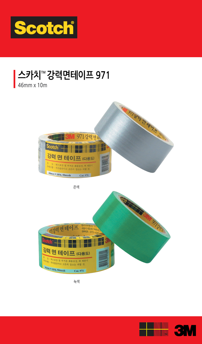 3M ½ºÄ«Ä¡ °·Âû¸éÅ×ÀÌÇÁ(³ì»ö) 46mm*10M 971 |