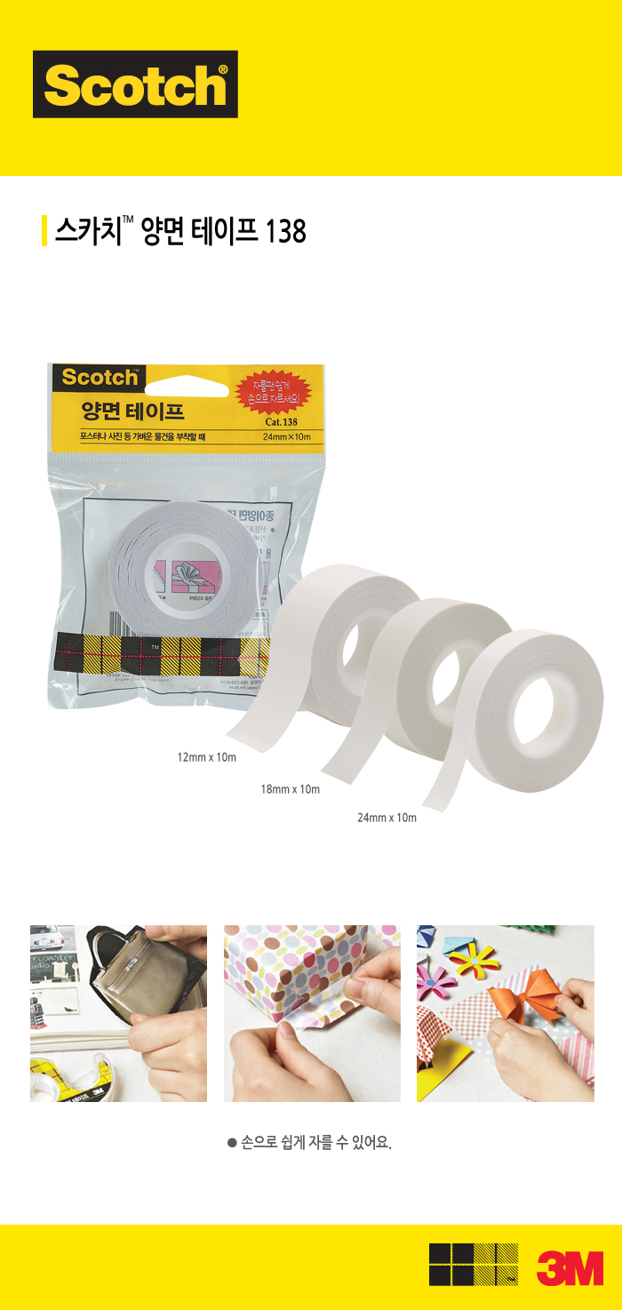 3M ½ºÄ«Ä¡Á¾À̾ç¸éÅ×ÀÌÇÁ 12mm*10M 138 |