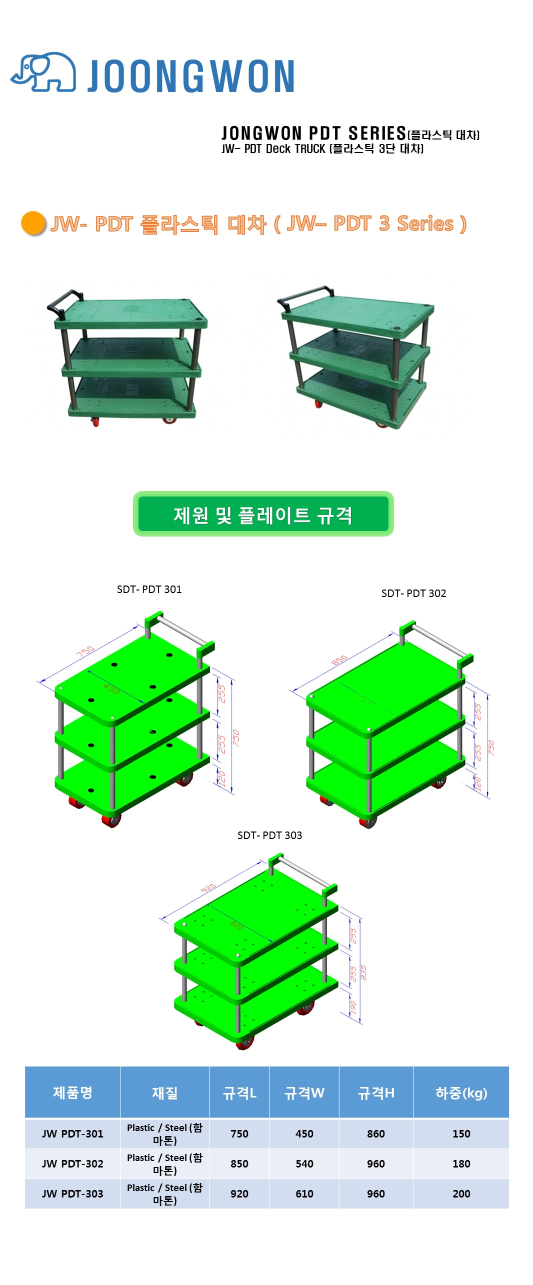 Ç°¸í ¹× ¸ðµ¨¸í [Áß¿ø»ê¾÷] ÇÃ¶ó½ºÆ½´ëÂ÷ 3´Ü ¼ÒÇü PDT-301