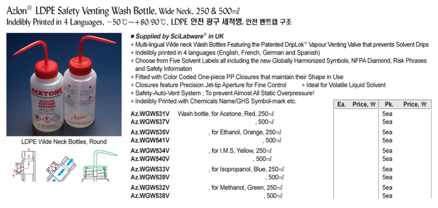 Ç°¸í ¹× ¸ðµ¨¸í [AZLON] LDPE ¾ÈÀü ±¤±¸ ¼¼Ã´º´ 250ml Ethanol¿ë Orange Az.WGW535V