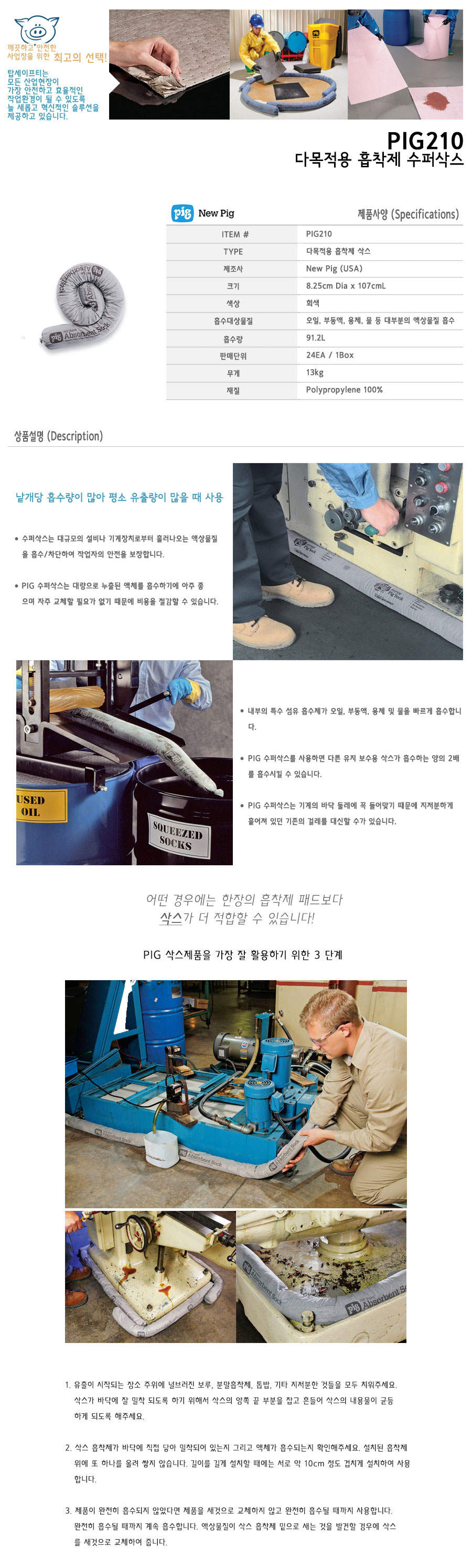 Ç°¸í ¹× ¸ðµ¨¸í [New Pig] ´ºÇÇ±× ´Ù¸ñÀû ÈíÂøÁ¦ ¼öÆÛ»è½º PIG210 24°³ÀÔ