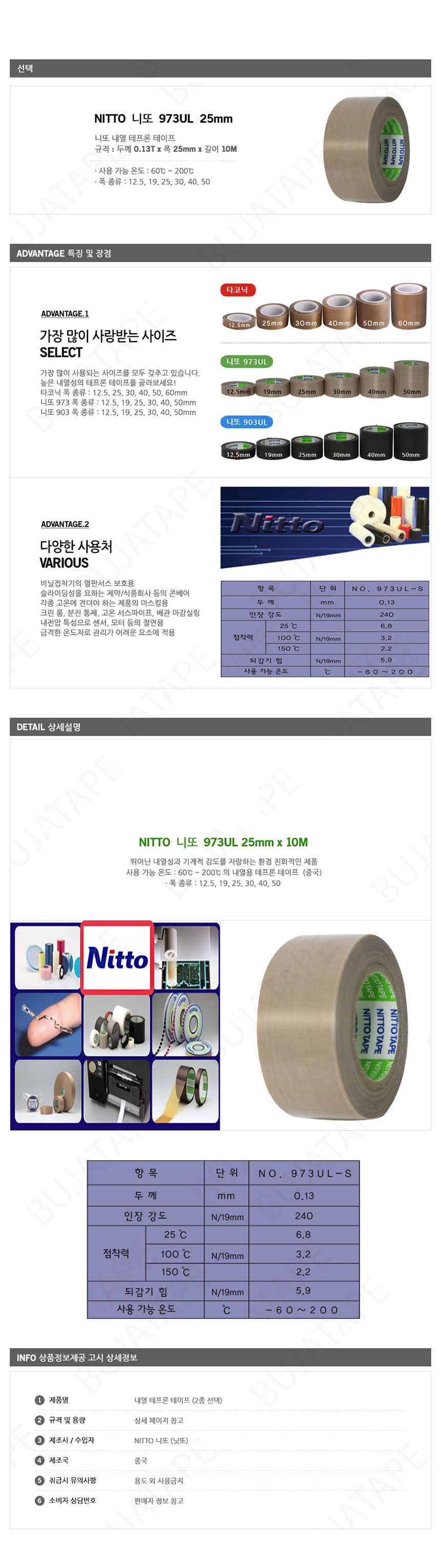 Ç°¸í ¹× ¸ðµ¨¸í [NITTO] ³»¿­Å×ÇÁ·ÐÅ×ÀÌÇÁ 973UL 0.13Tx25mmx10M