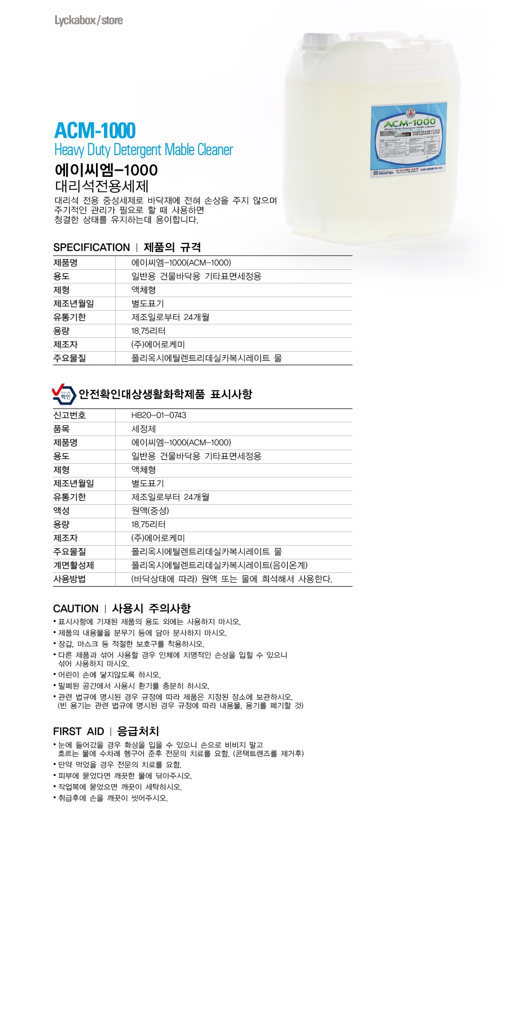 Ç°¸í ¹× ¸ðµ¨¸í [¿¡¾î·ÎÄɹÌ] ´ë¸®¼® Àü¿ë¼¼Á¦ ACM-1000 18.75L