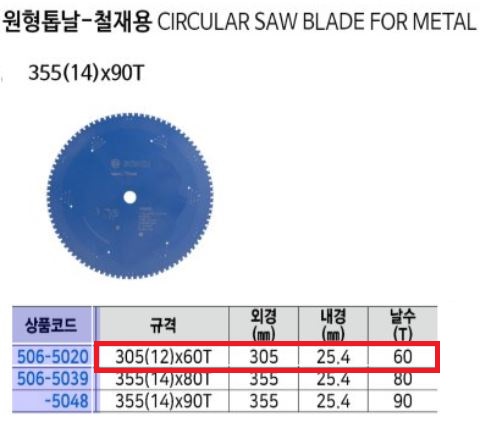 ¸ðµ¨¸í ¹× ±Ô°Ý 305mm/60T-MT Ãâ°í´ÜÀ§ EA