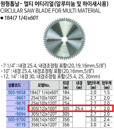 ¸ðµ¨¸í ¹× ±Ô°Ý 305mm/100T -AL Ãâ°í´ÜÀ§ EA