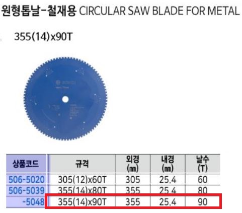 ¸ðµ¨¸í ¹× ±Ô°Ý 355mm/90T-MT Ãâ°í´ÜÀ§ EA