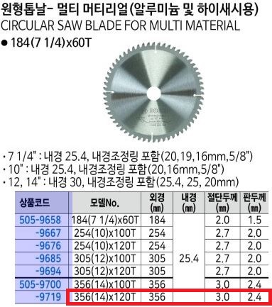 ¸ðµ¨¸í ¹× ±Ô°Ý 356mm/120T -AL Ãâ°í´ÜÀ§ EA