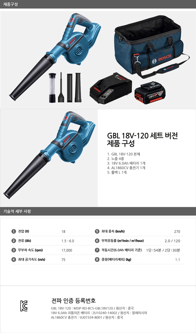 [º¸½¬]GBL18V-120 (18V/5.0Ah) ¹èÅ͸®1°³ 1619KT9256 |