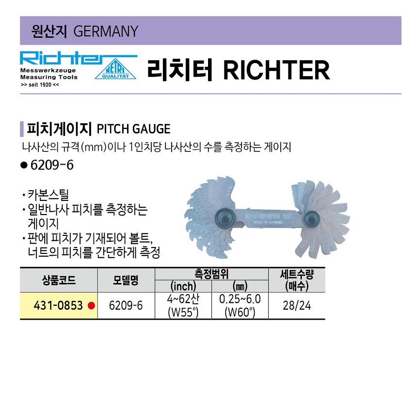 Ç°¸í ¹× ¸ðµ¨¸í [¸®Ä¡ÅÍ]ÇÇÄ¡°ÔÀÌÁö 6209-6 (INCH/MM°â¿ë)
