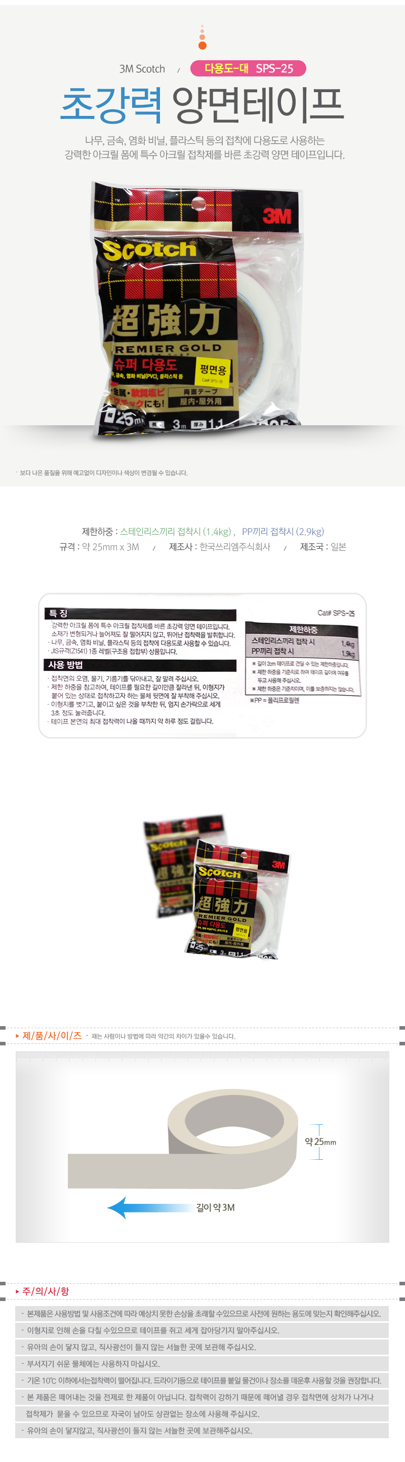 3M Ãʰ·Â Æû ¾ç¸éÅ×ÀÌÇÁ SPS-25 (´Ù¿ëµµ, ´ë, 25mm*3M) |