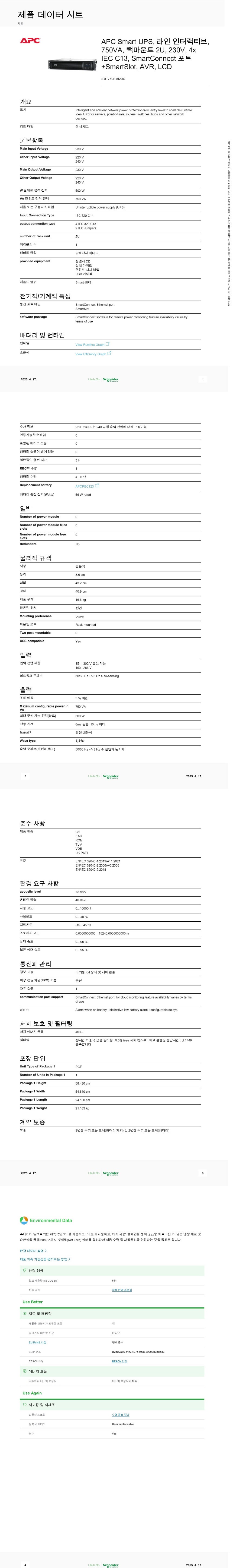 | ¸ðµ¨¸í | APC SMT750RMI2UC ¹«Á¤Àü Àü¿ø°ø±Þ UPS 500W 750VA | ||