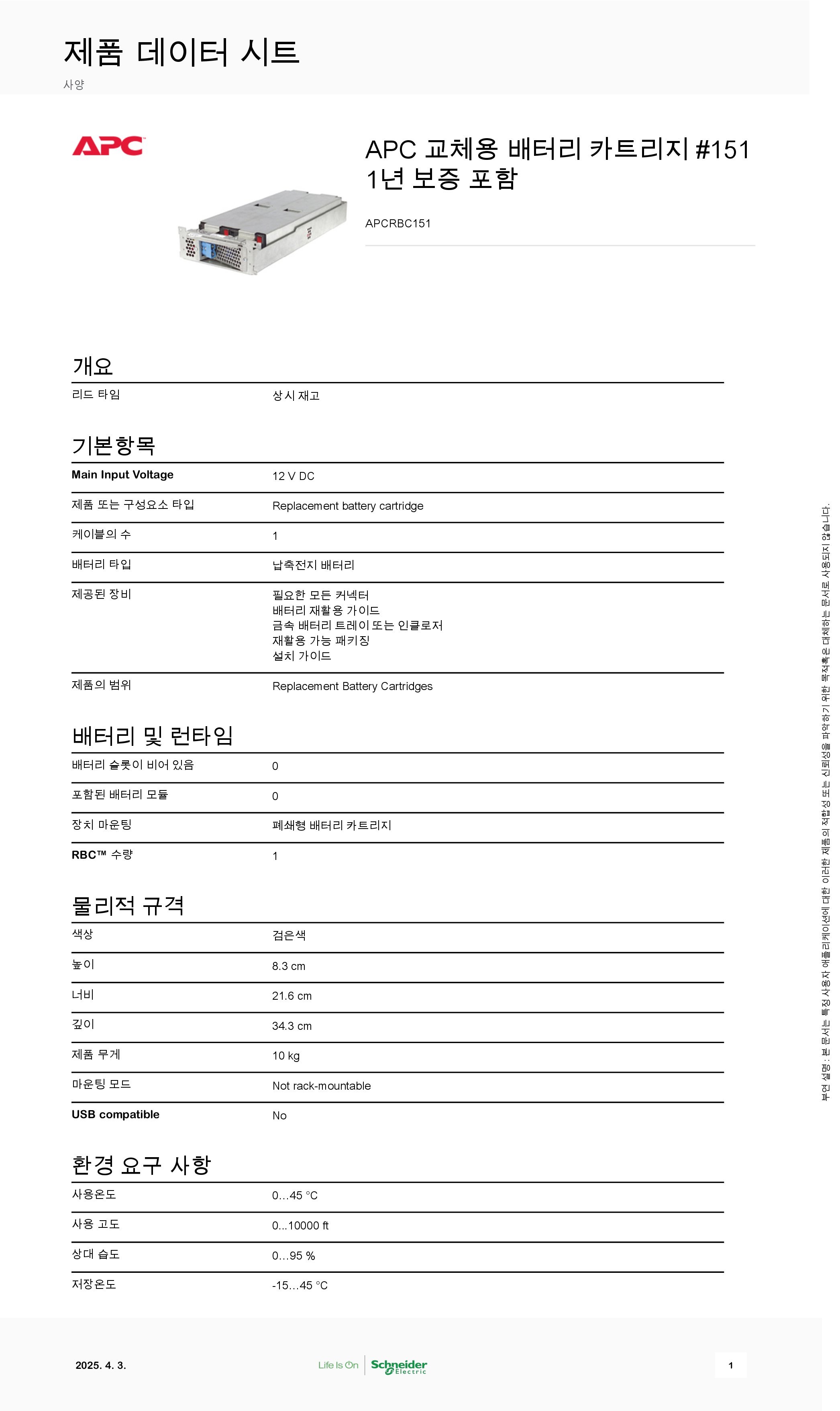 ¸ðµ¨¸íAPC RBC151 ±³Ã¼¿ë ¹èÅ͸® [SMC3000RMI2U ȣȯ]