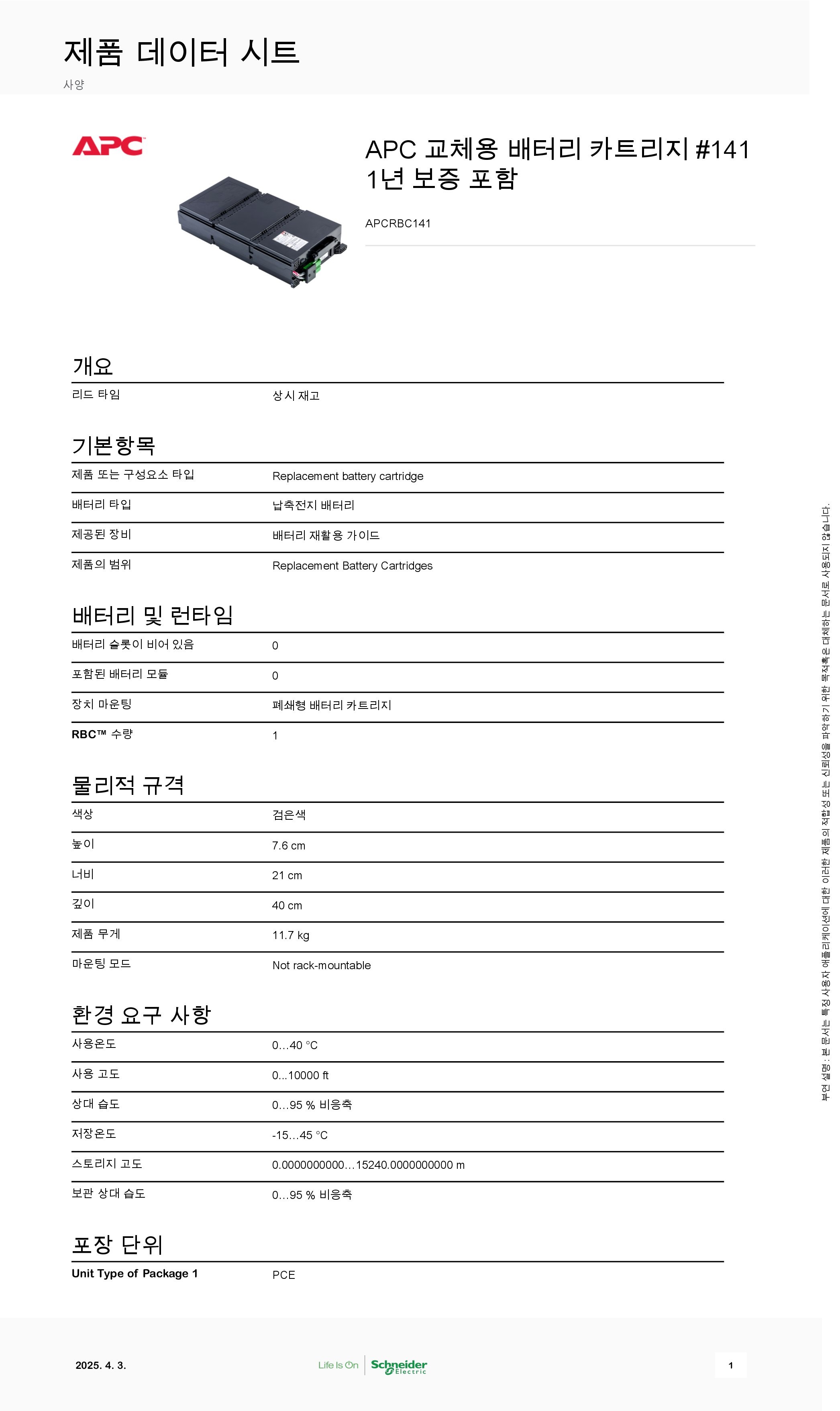 ¸ðµ¨¸íAPC APCRBC141 ±³Ã¼¿ë ¹èÅ͸® [SRT2200XLI ȣȯ]