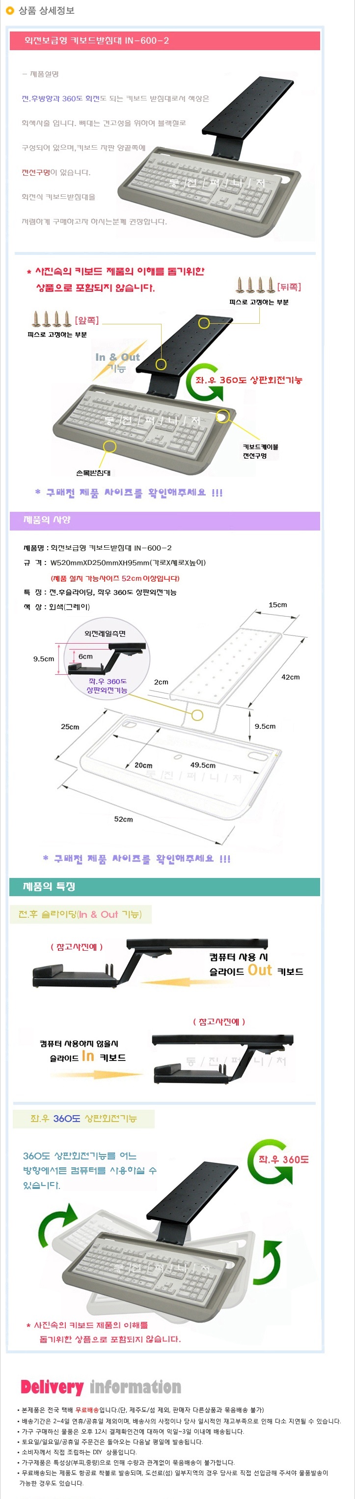 | ¸ðµ¨¸í | µ¿ÁøÆÛ´Ïó IN-600-2 Űº¸µå¹Þħ´ë(º¸±ÞȸÀüÇü)-(¾÷üÁ÷¹ß¼Û/¹«·á¹è¼Û) | ||