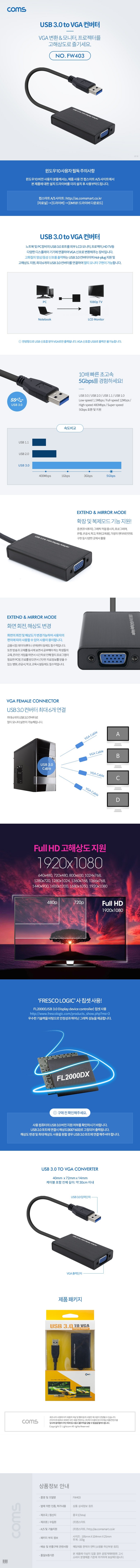 | ¸ðµ¨¸í | ¶óÀÌÆ®ÄÄ COMS FW403 USB 3.0 to VGA º¯È¯ ÄÁ¹öÅÍ | ||