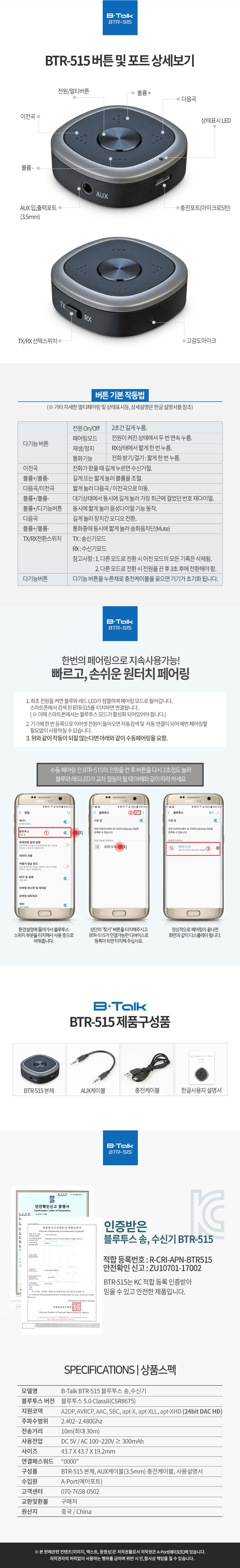 | ¸ðµ¨¸í | ¿¡ÀÌÆ÷Æ® BTR515 ºí·çÅõ½º 5.0 ¿Àµð¿À ¼Û¼ö½Å±â µ¿±ÛÀÌ | ||
