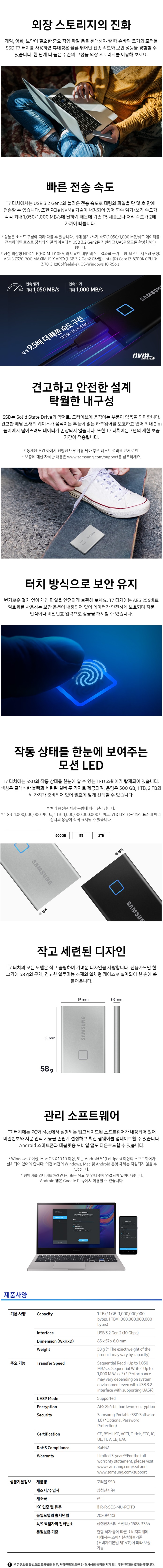 | ¸ðµ¨¸í | °ø½ÄÀÎÁõ »ï¼ºÀüÀÚ Portable SSD T7 Touch 1TB ºí·¢ SSD ¿ÜÀåÇϵå Á¤Ç° | ||