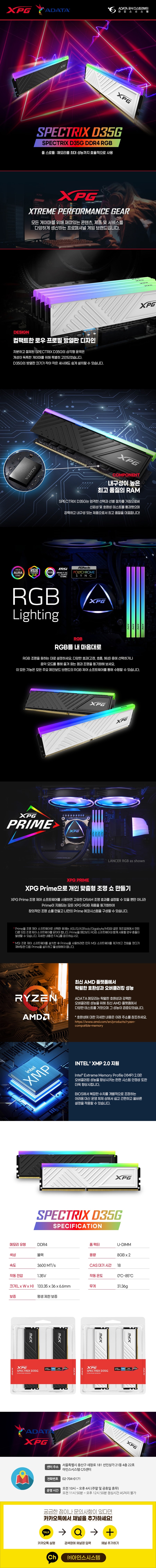 | ¸ðµ¨¸í | ADATA XPG DDR4-3600 CL18 SPECTRIX D35G RGB ºí·¢ ÆÐŰÁö (16GB(8Gx2)) | ||