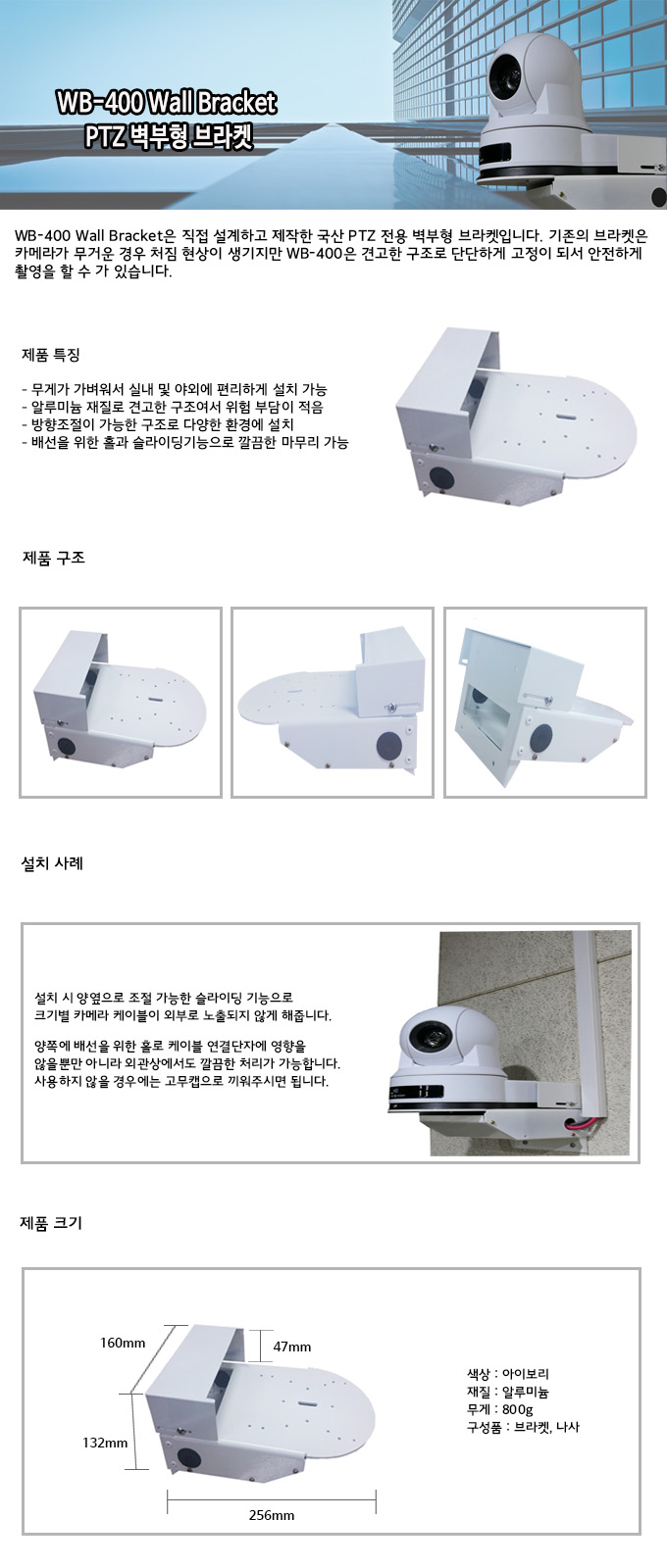 | ¸ðµ¨¸í | µðÁöÅÐÈ«ÀÏ WB-400 PTZ Ä«¸Þ¶ó º®ºÎÇü ºê¶óÄÏ [¾÷üÁ÷¹ß¼Û] | ||