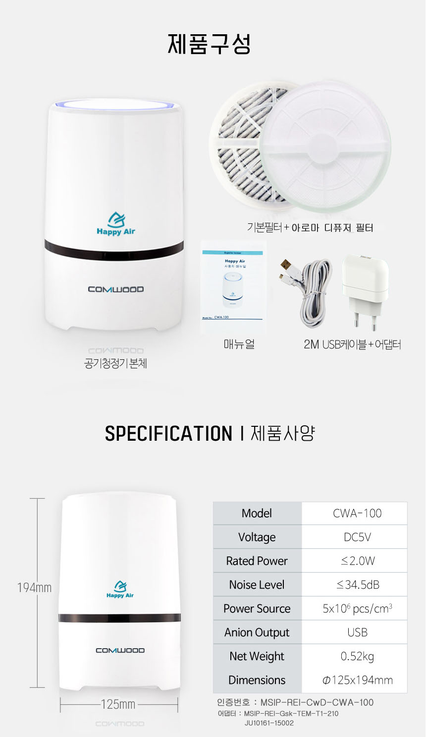 | ¸ðµ¨¸í | ÇØÇÇ¿¡¾î ÇìÆÄÇÊÅÍ °ø±âûÁ¤±â CWA-100 | ||