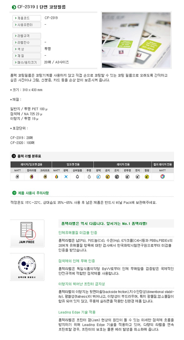 ÆûÅØ ¼ÕÄÚÆÃ Çʸ§ A3 (310x433)(´Ü¸é/CF-2319/20¸Å) |