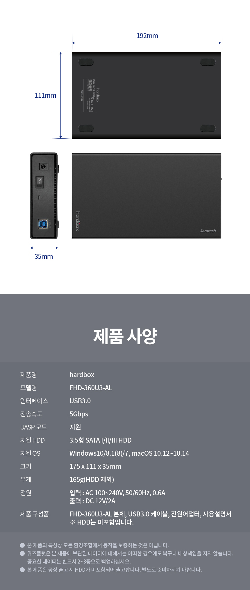 3.5ÀÎÄ¡ USB3.0 ¿ÜÀåÇϵåÄÉÀ̽º / FHD-360U3-AL |