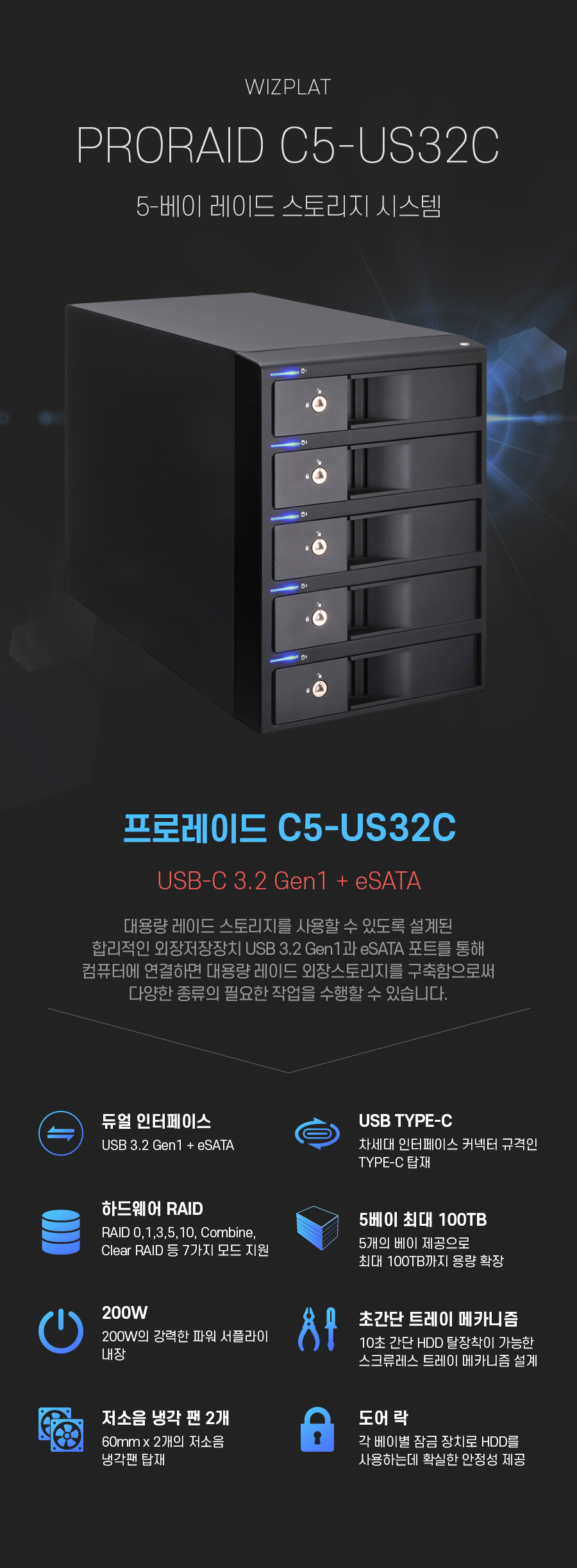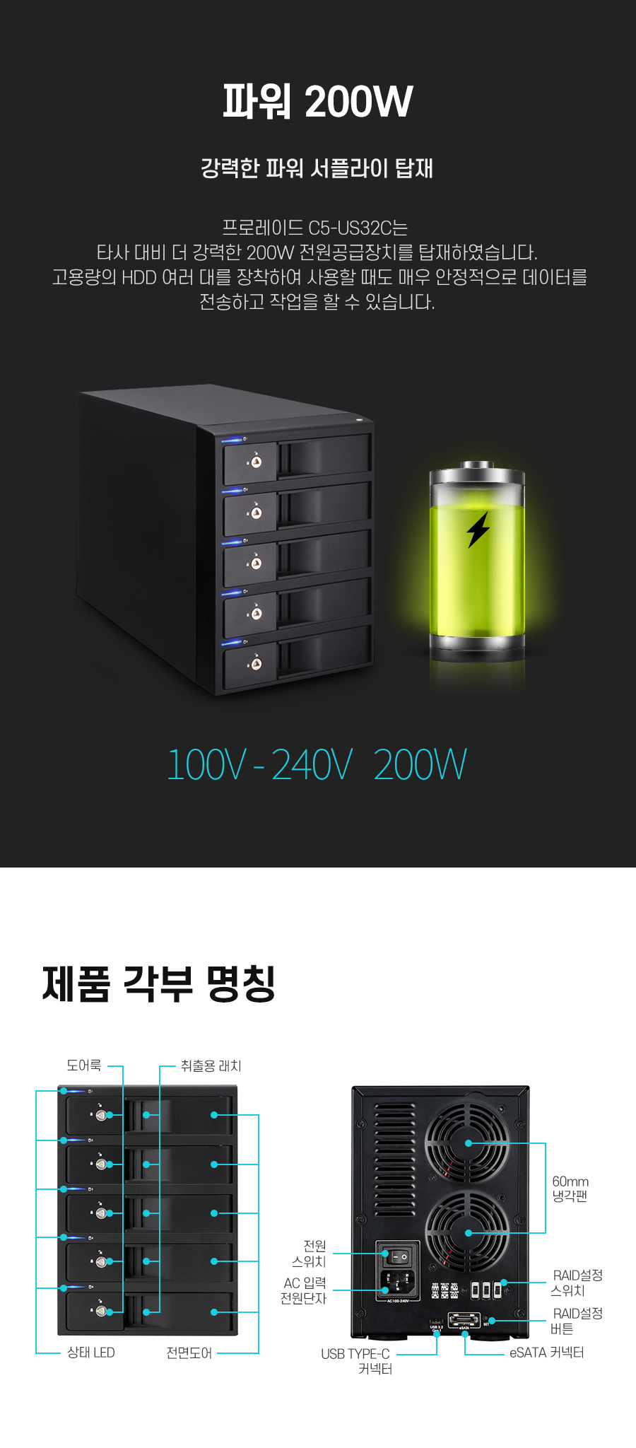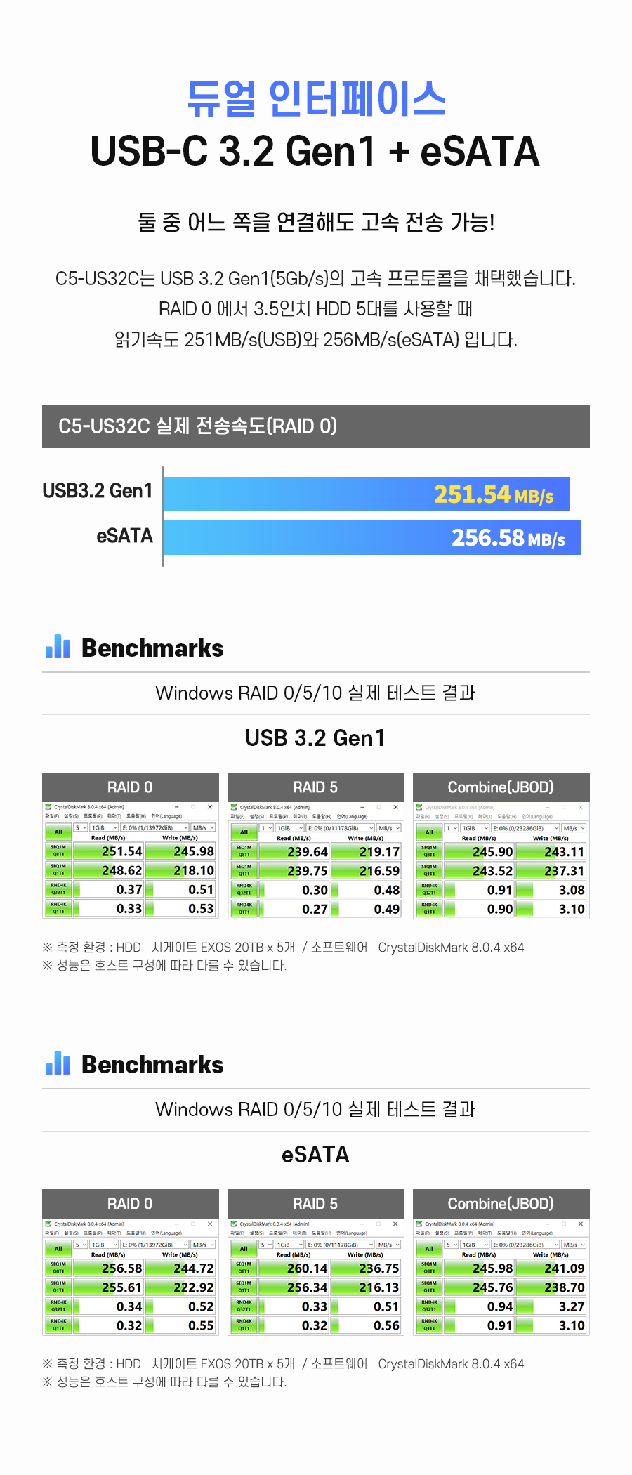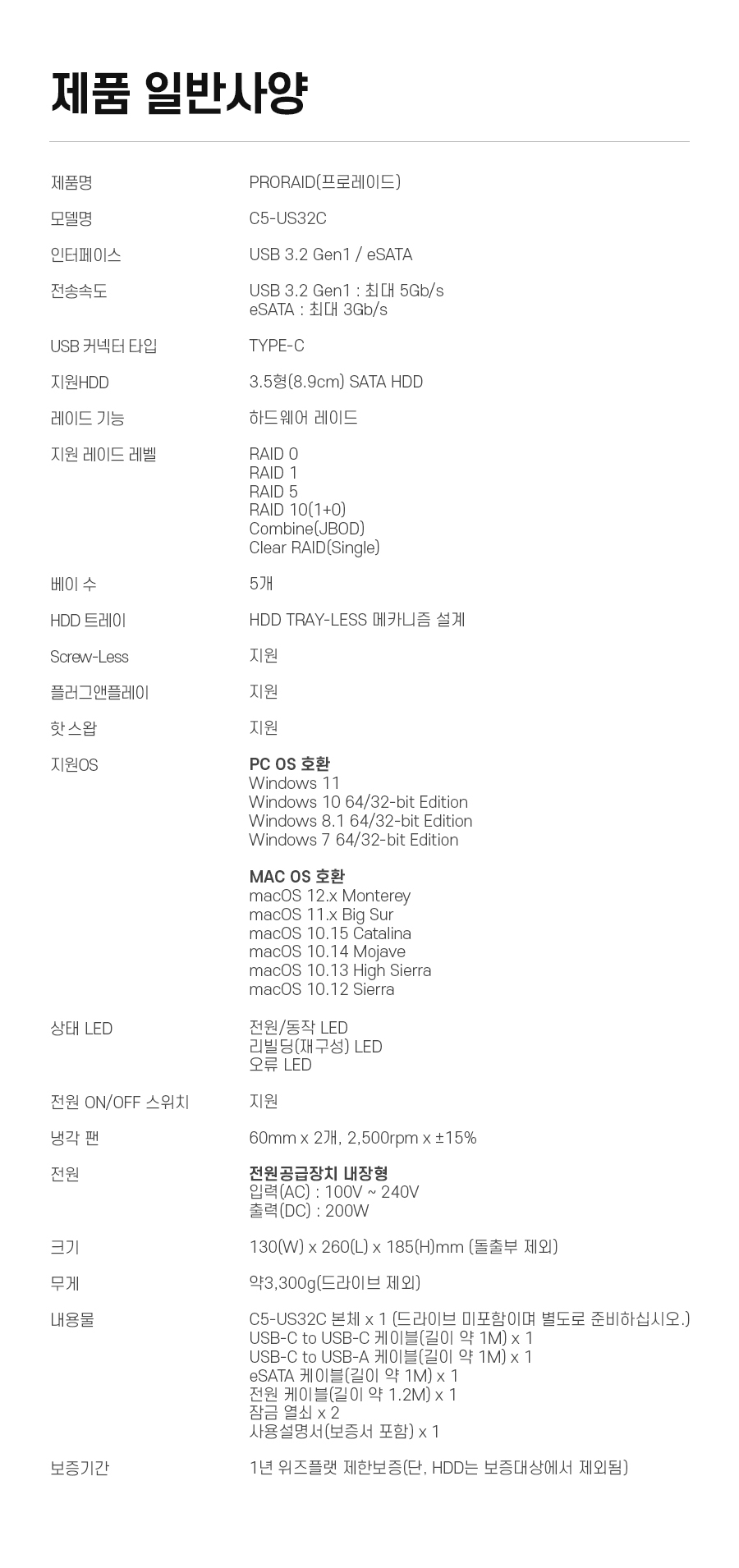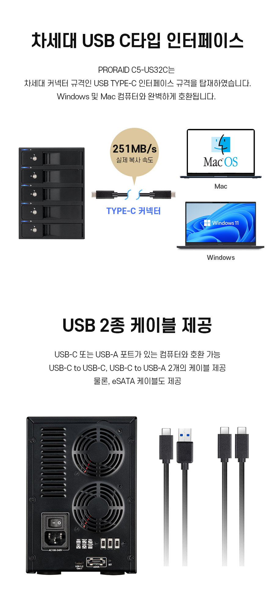 5º£ÀÌ USB3.2 Gen1 C + eSATA RAID ¿ÜÀ彺Å丮Áö / PRORAID C5-US32C |