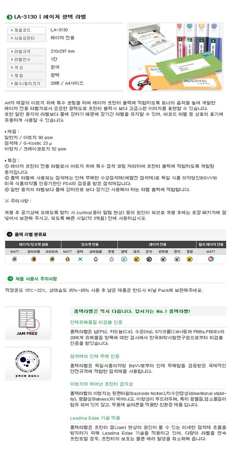 ÆûÅØ ·¹ÀÌÀúÀü¿ë ºÐ·ùÇ¥±â¿ë¶óº§ 20¸Å 1Ä LA-3130/A4, 210X297mm, 20¸Å/pkg, ±¤ÅÃ, ¶óº§¼ö1, ·¹ÀÌÀúÇÁ¸°ÅÍÀü¿ë/A4, 210X297mm, 20¸Å/pkg, ±¤ÅÃ, ¶óº§¼ö1, ·¹ÀÌÀúÇÁ¸°ÅÍÀü¿ë/LA-3130 |