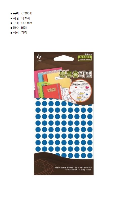 Ç°¸í ¹× ¸ðµ¨¸í ·¹ÀÌÅ×Å© ºÐ·ù¿ë¶óº§ ¨ª8mm û»ö 11¸Å 20-C305B