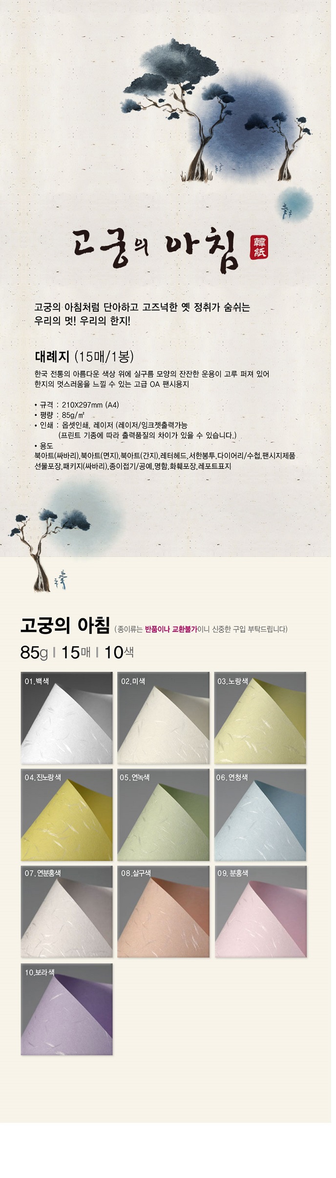 »ï¿øÆ¯¼öÁö ÇÑÁö °í±ÃÀÇ ¾ÆÄ§-08 »ì±¸»ö 85g A4 15¸Å |
