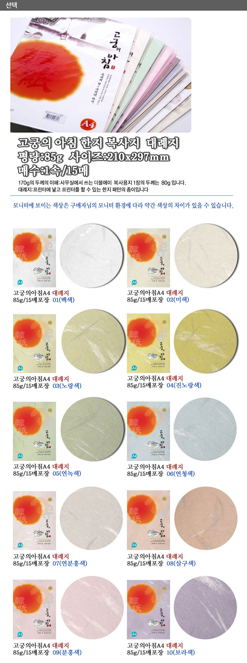 »ï¿øÆ¯¼öÁö ÇÑÁö °í±ÃÀÇ ¾ÆÄ§-07 ¿¬ºÐÈ« 85g A4 15¸Å |