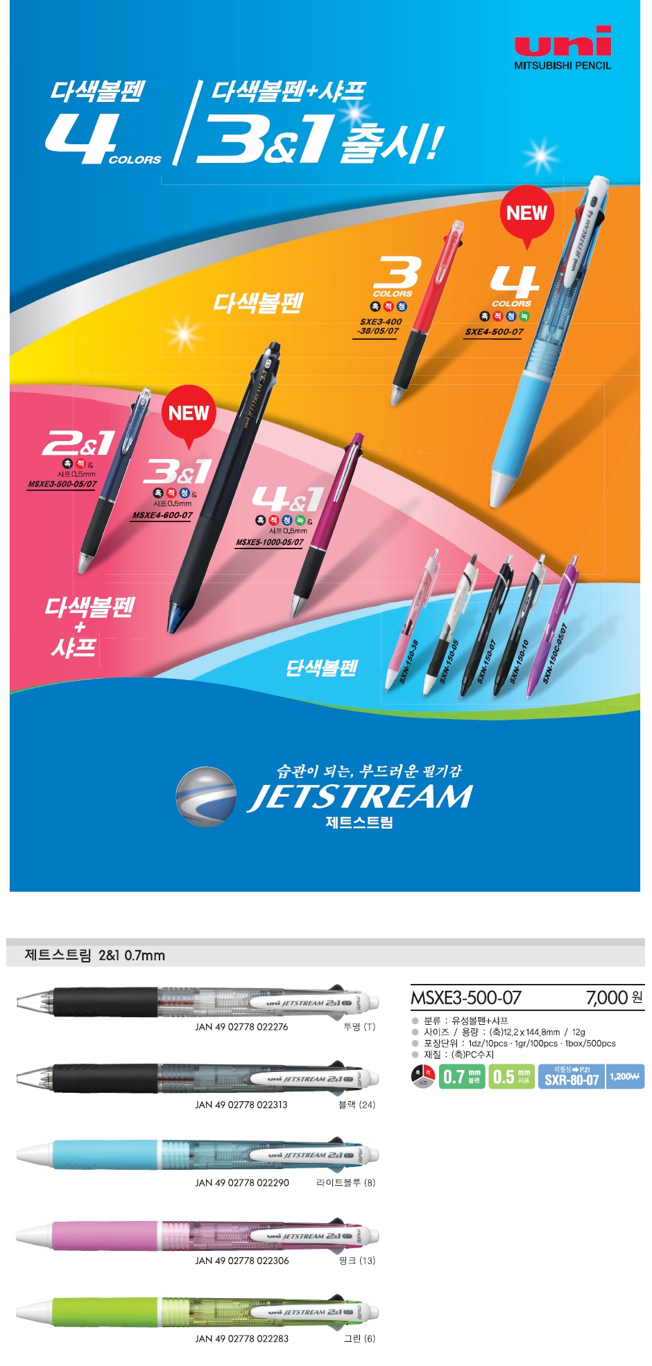 ¹ÌÂêºñ½Ã Á¦Æ®½ºÆ®¸² 2+1 ¸ÖƼMSXE-500-(0.7) Èæ |