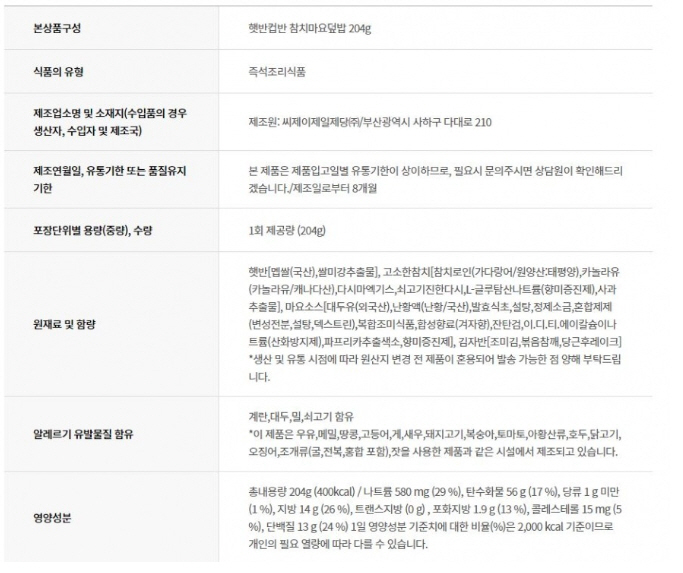 CJ ÄÅ¹Ý ÂüÄ¡¸¶¿äµ¤¹ä 204g*24 |