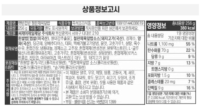 CJ ÄÅ¹Ý Ã¶ÆÇÁ¦À°µ¤¹ä 256g*24 |