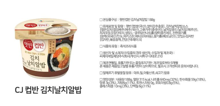 ÇÞ¹Ý ÄÅ¹Ý ±èÄ¡³¯Ä¡¾Ë¹ä 188g*18 |