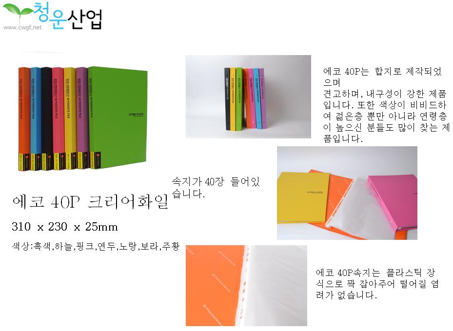 û¿î A4 ¿¡ÄÚ ÇÕÁö Ŭ¸®¾îÈÀÏ 40¸Å ºÐÈ« CW-1674 |