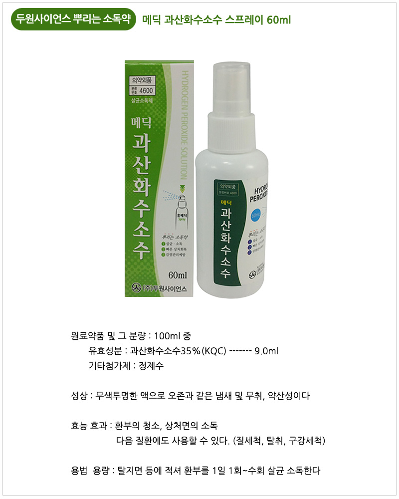 ¸Þµñ ½ºÇÁ·¹ÀÌÇü ¼Òµ¶¿ë °ú»êȼö¼Ò 60ml |