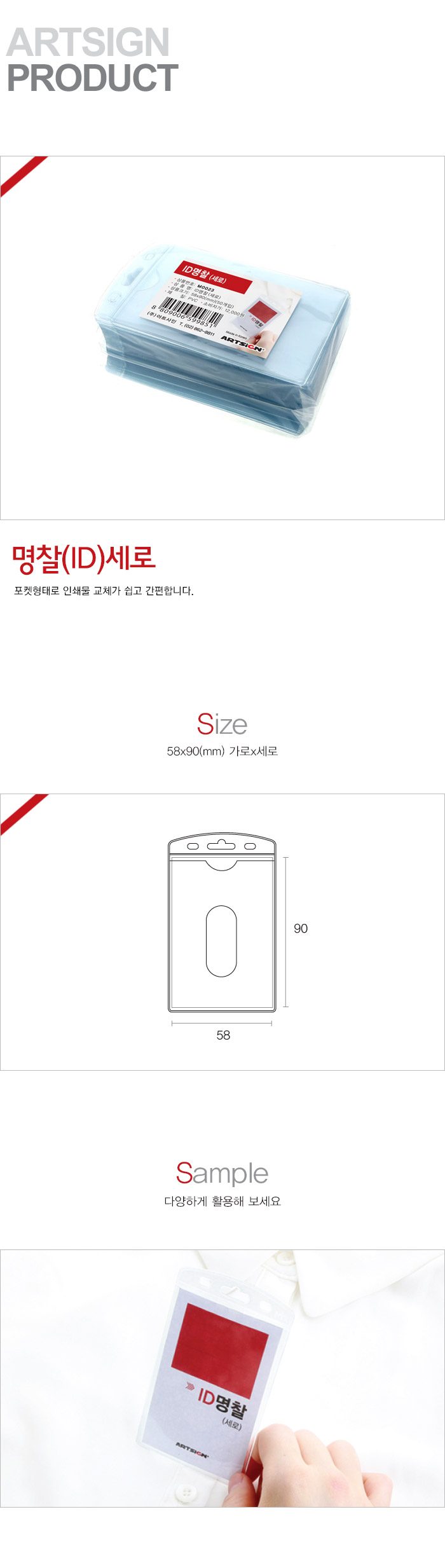 [¾ÆÆ®»çÀÎ] ID¸íÂû(¼¼·Î)(58*90mm) 50°³ÀÔ/PAC (No.2331/M0023) |