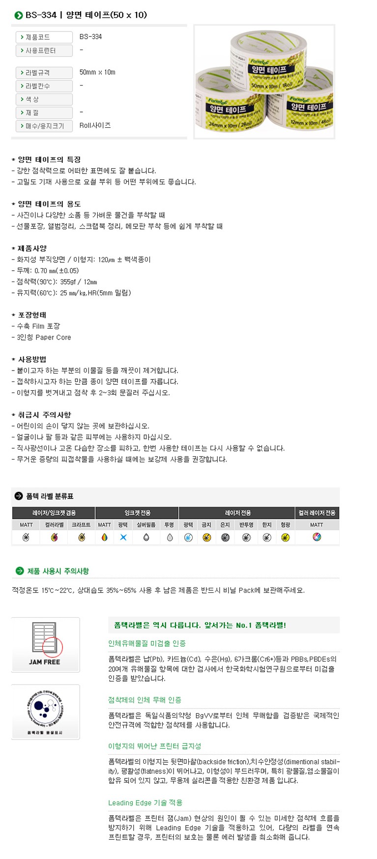 ÆûÅØ(Formtec) ¾ç¸é Å×ÀÌÇÁ BS-334(50mm*10M) |