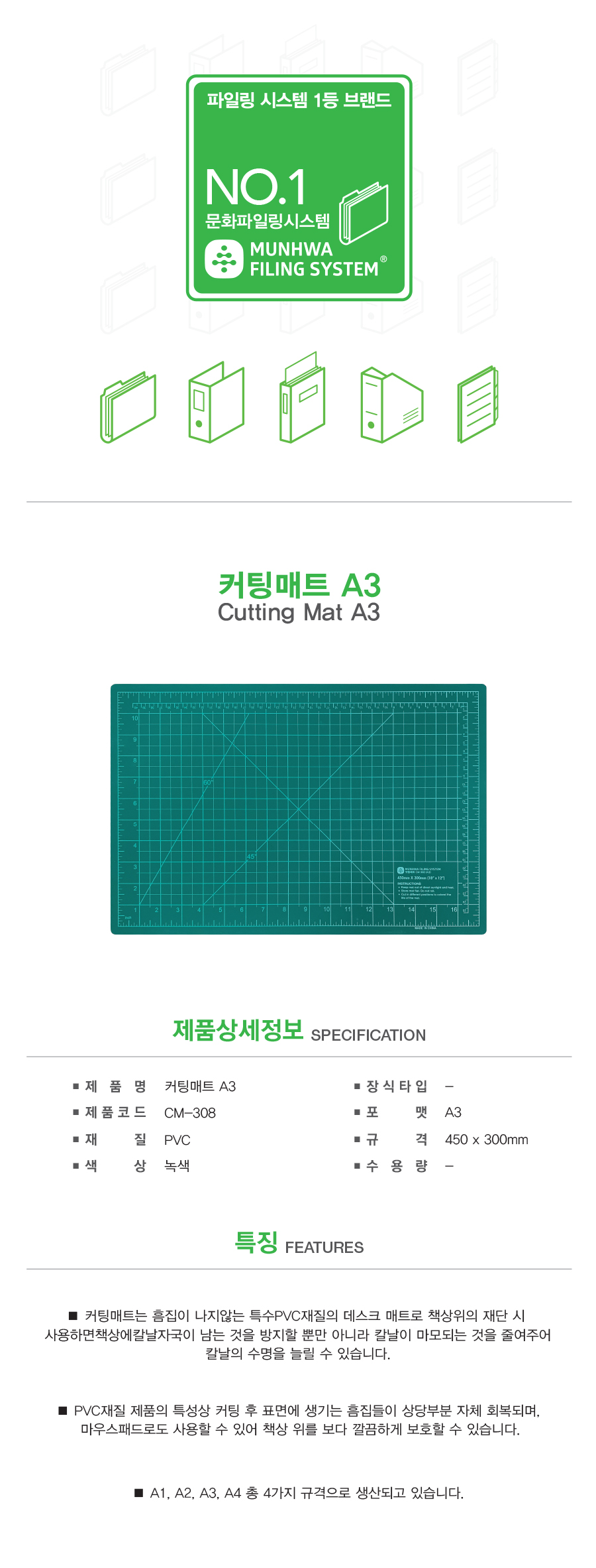 ¹®È»ê¾÷ ÄÆÆÃ¸ÅÆ® A3 (450x300) ³ì»ö CM308-1 |